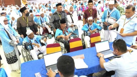 Para jemaah Kloter 4 mengikuti proses pemeriksaan kesehatan, pembagian paspor, gelang identitas, kartu Nusuk hingga living cost untuk masing-masing jemaah sebesar 750 Riyal. Selanjutnya, jemaah calon haji kloter 4 ini akan ‘diterbangkan’ Sabtu (25/04/2026) pukul 13.05 WIB. bs/nrd