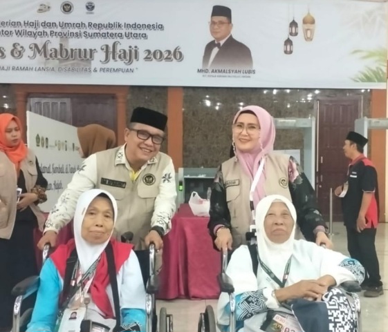 Jamaah calon haji asal Kota Medan yang merupakan jamaah dari Kelompok Bimbingan Ibadah Haji dan Umroh (KBIHU) Al-Muktar telah bersiap mengikuti prosesi pemberangkatan yang dilepas Kepala Kantor Wilayah Kementerian Haji dan Umroh Sumatera Utara Dr H. Zulkifli Sitorus, M.Ag, Kamis (23/4/2026) dari Asrama Haji Medan.