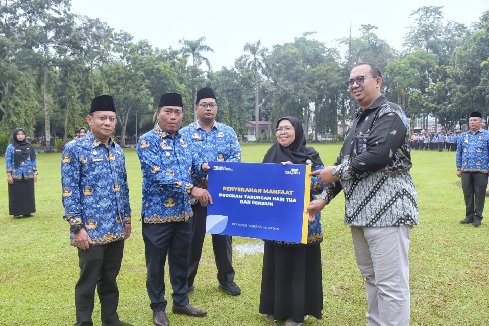 Pada kesempatan yang sama, Wabup turut menyerahkan manfaat Program Tabungan Hari Tua (THT) dan Pensiun dari PT Taspen (Persero) Cabang Medan kepada Staf Ahli Bidang Ekonomi, Keuangan dan Pembangunan, Ir Hj Syarifah Alwiyah, MMA, yang akan memasuki masa purna bakti per 1 November 2025.