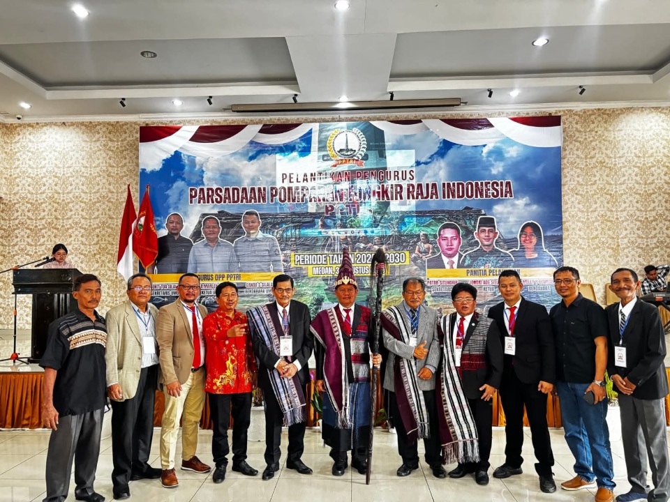 MEDAN : Pelantikan pengurus Parsadaan Pomparan Tungkir Raja Indonesia (PPTRI) periode 2025–2030 berlangsung meriah di Orchid Room Catholic Center Jalan Mataram Medan, Sabtu. (30/8/2025)