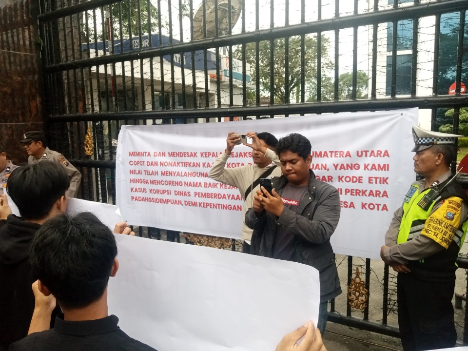 MEDAN : Puluhan mahasiswa yang tergabung dalam Pergerakan Mahasiswa Anti Korupsi (PERMAK) Sumatera Utara menggelar unjuk rasa di depan Kantor Kejaksaan Tinggi Sumatera Utara (Kejatisu) pada hari Rabu, 17 September 2025. Aksi ini menuntut penonaktifan Kepala Kejaksaan Negeri (Kajari) Padang Sidempuan, Lambok Sidabutar, atas dugaan rekayasa kasus korupsi yang menjerat mantan Kepala Dinas Pemberdayaan Masyarakat dan Desa, Ismail Fahmi Siregar.