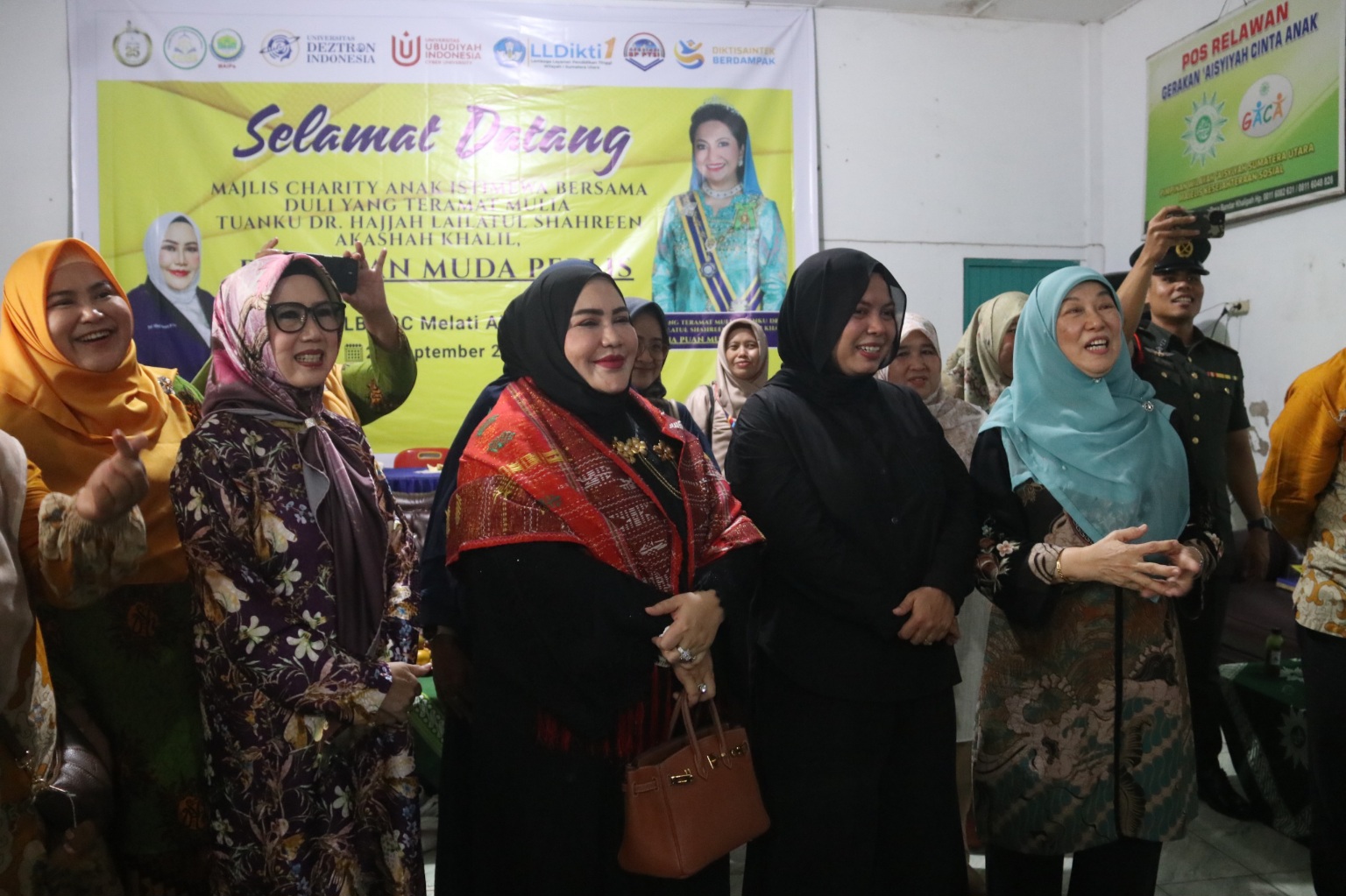 DELI SERDANG : Rektor Universitas Deztron Indonesia (UDI), Prof. Adjunct. Marniati, S.E., M.Kes, bersama Raja Puan Muda Perlis, melakukan kunjungan ke Sekolah Luar Biasa (SLB) ABC Melati Aisyiah Deli Serdang. Kunjungan ini dilakukan sebagai bentuk kepedulian terhadap anak-anak istimewa sekaligus mempererat hubungan persahabatan antara Indonesia dan Malaysia, khususnya Perlis.