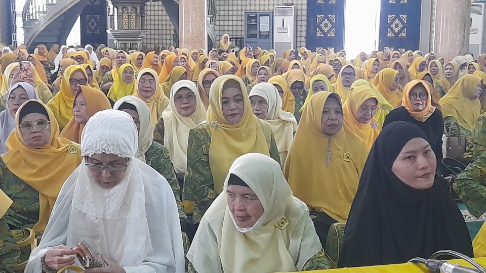 MEDAN : Dewan Pimpinan Daerah (DPD) Pengajian Al Hidayah Kota Medan menggelar Tablig Akbar. Yaitu Shalat Tasbih yang diikuti sekira 1.000 jamaah Al Hidayah, memberikan santunan kepada yatim piatu, zikir dan tausiah yang yang disampaikan Ustad KH Amiruddin MS, di Masjid Raya Al Manshun Medan pada Kamis 12 Maret 2026.