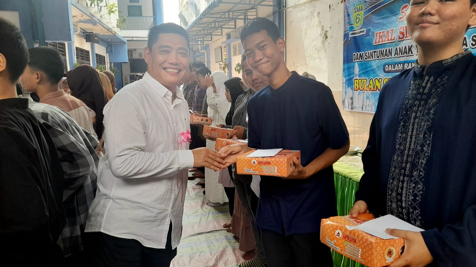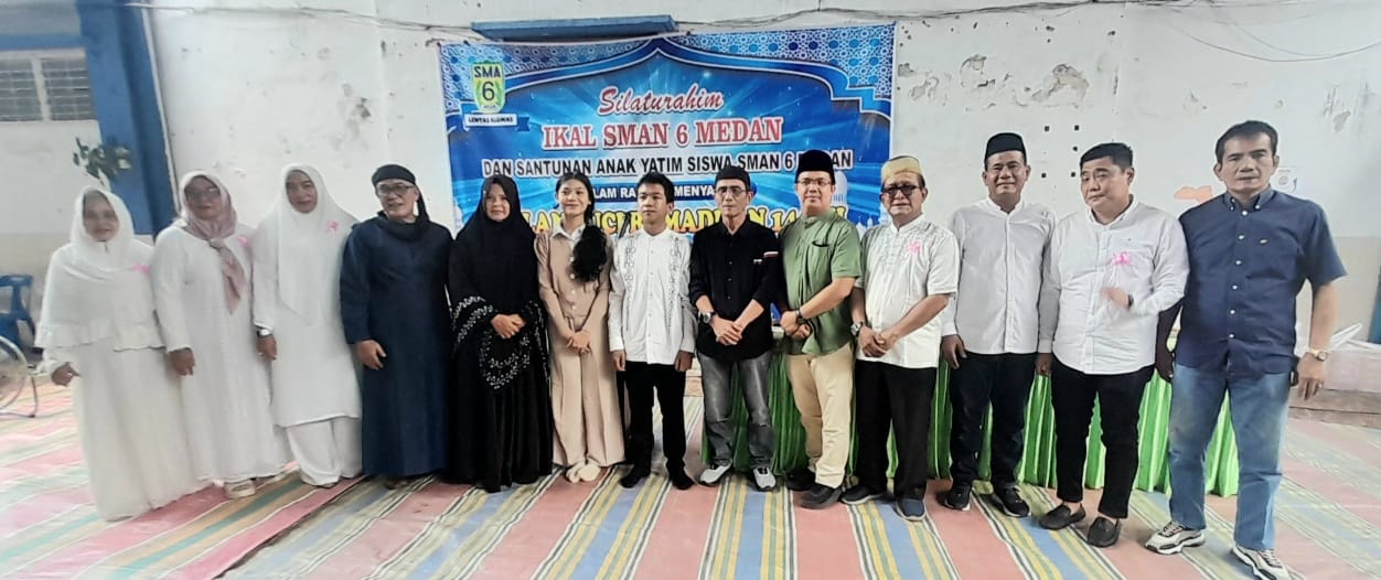 MEDAN : Dalam rangka menyambut bulan suci Ramadhan 1447 H, Ikatan Keluarga Alumni (IKAL) SMA Negeri 6 menggelar acara silaturahmi, makan siang bersama serta memberikan santunan kepada anak yatim di sekolah sekaligus menyerahkan bantuan untuk siswa yang ikut Olimpiade Fisika di Bandung. Acara silaturahmi tersebut digelar pada Ahad 8 Pebruari 2026 di SMA Negeri 6 Jalan Ansari Medan.