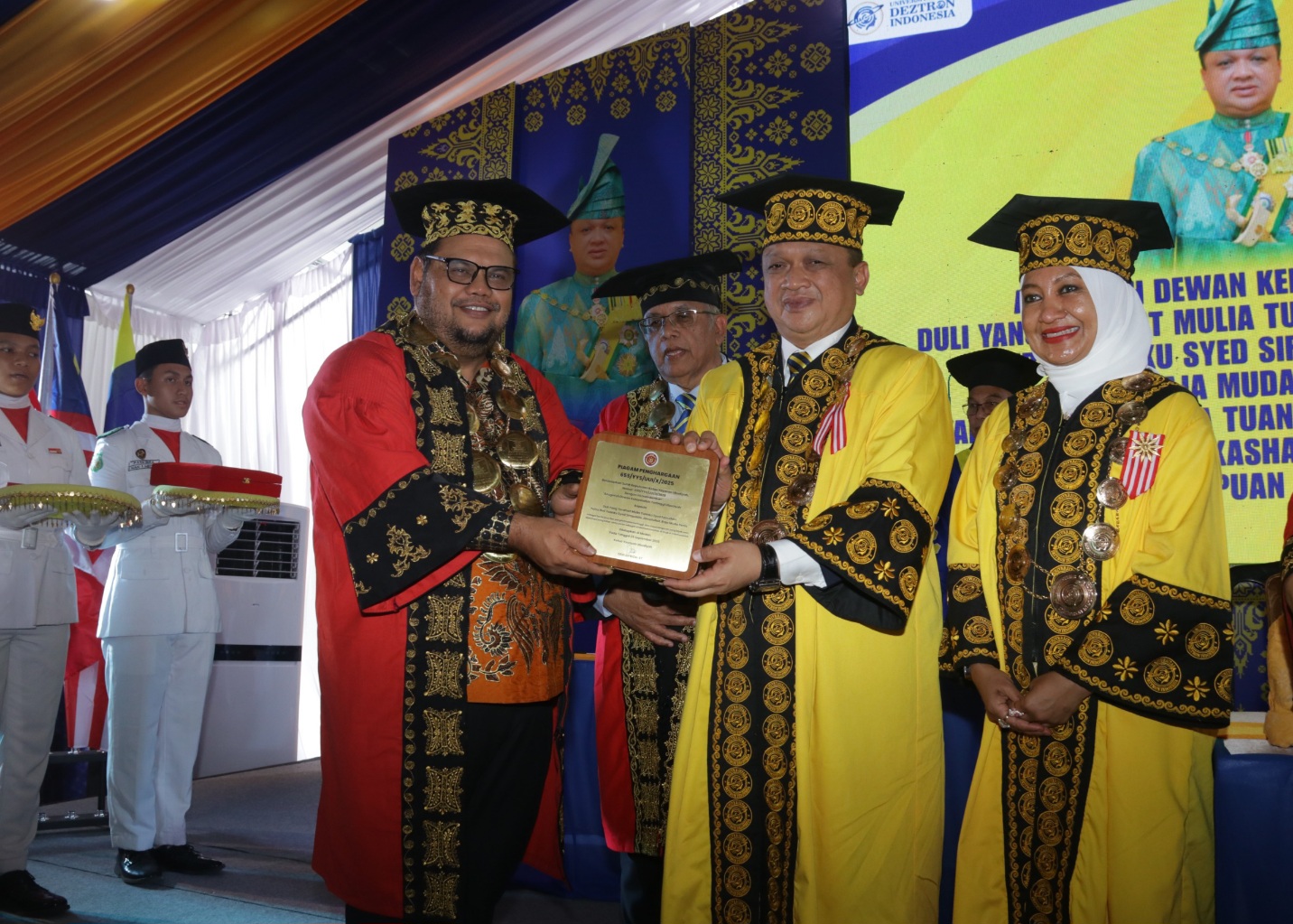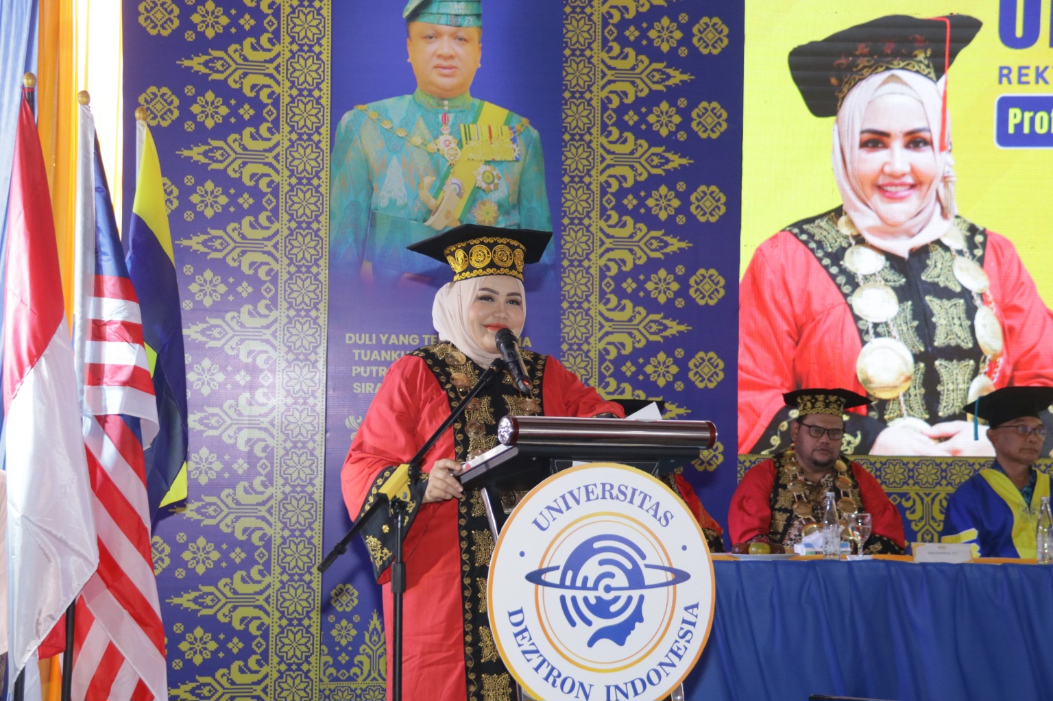 MEDAN : Rektor Universitas Deztron Indonesia (UDI) Prof Adjunct DR Marniati SE MK MKes membuka sidang senat terbuka dalam rangka memberikan Anugrah Dewan Kehormatan Tertinggi kepada Duli Yang Teramat Mulia Tuanku Syed Faizuddin Putra Ibni Tuanku Syed Sirajuddin Jamalullail Raja Muda Perlis dan kepada Duli Yang Teramat Mulia Tuanku DR Hj Lailatul Shahreen Akashah Khalil Raja Puan Muda Perlis. Pemberian anugrah tersebut dilaksanakan di Kampus UDI Jalan Perintis Kemerdekaan pada Kamis 24 September 2025.
