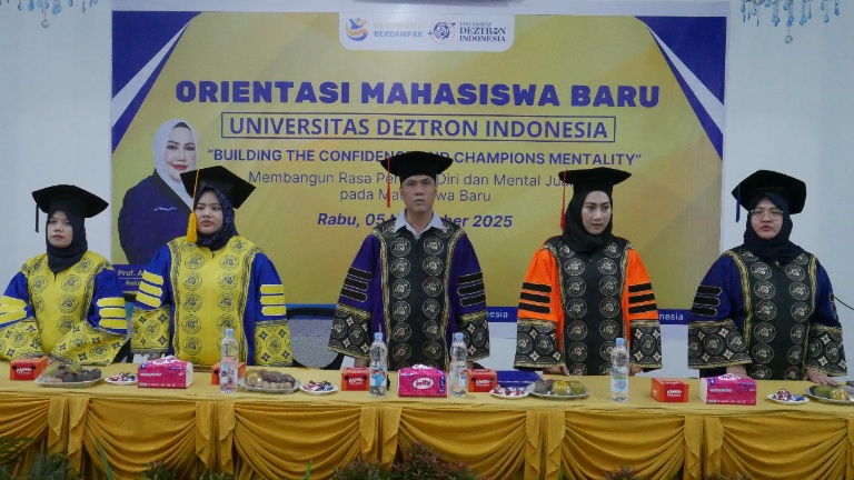 MEDAN : Universitas Deztron Indonesia (UDI) resmi membuka penerimaan mahasiswa baru tahun akademik 2025/2026 melalui Sidang Senat Terbuka yang berlangsung dengan khidmat di Aula Kampus UDI. Dalam kegiatan ini, Rektor Universitas Deztron Indonesia Prof. Adjunct. Dr. Marniati, S.E., M.Kes. yang diwakilkan oleh Wakil Rektor I Dr. H. Yohny Anwar, M.M., M.H., secara simbolis meresmikan ratusan mahasiswa baru yang akan mengikuti rangkaian kegiatan Organisasi Mahasiswa Baru (OMB) pada Rabu (5/11/2025).
