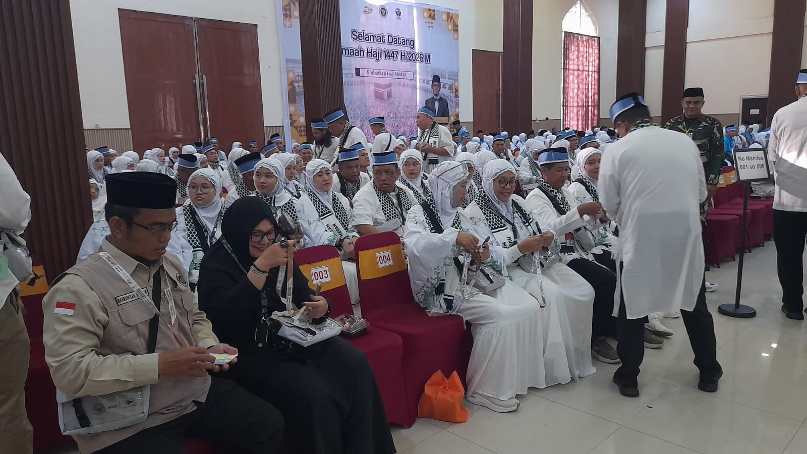 “Semua bekal sudah dipersiapkan. Haji tak boleh jidal dan rafasa. Berbekallah ke haji yaitu dengan taqwa. Ini yang kita bawa agar kita menjadi haji yang mabrur dan mabrurah. Oleh karena itu perlu disiplin untuk kehadiran di pagi ini. Kita khawatir ada kesalahan ketika kita membagi-bagikan kartu nusuq,” jelas Zulkifli.